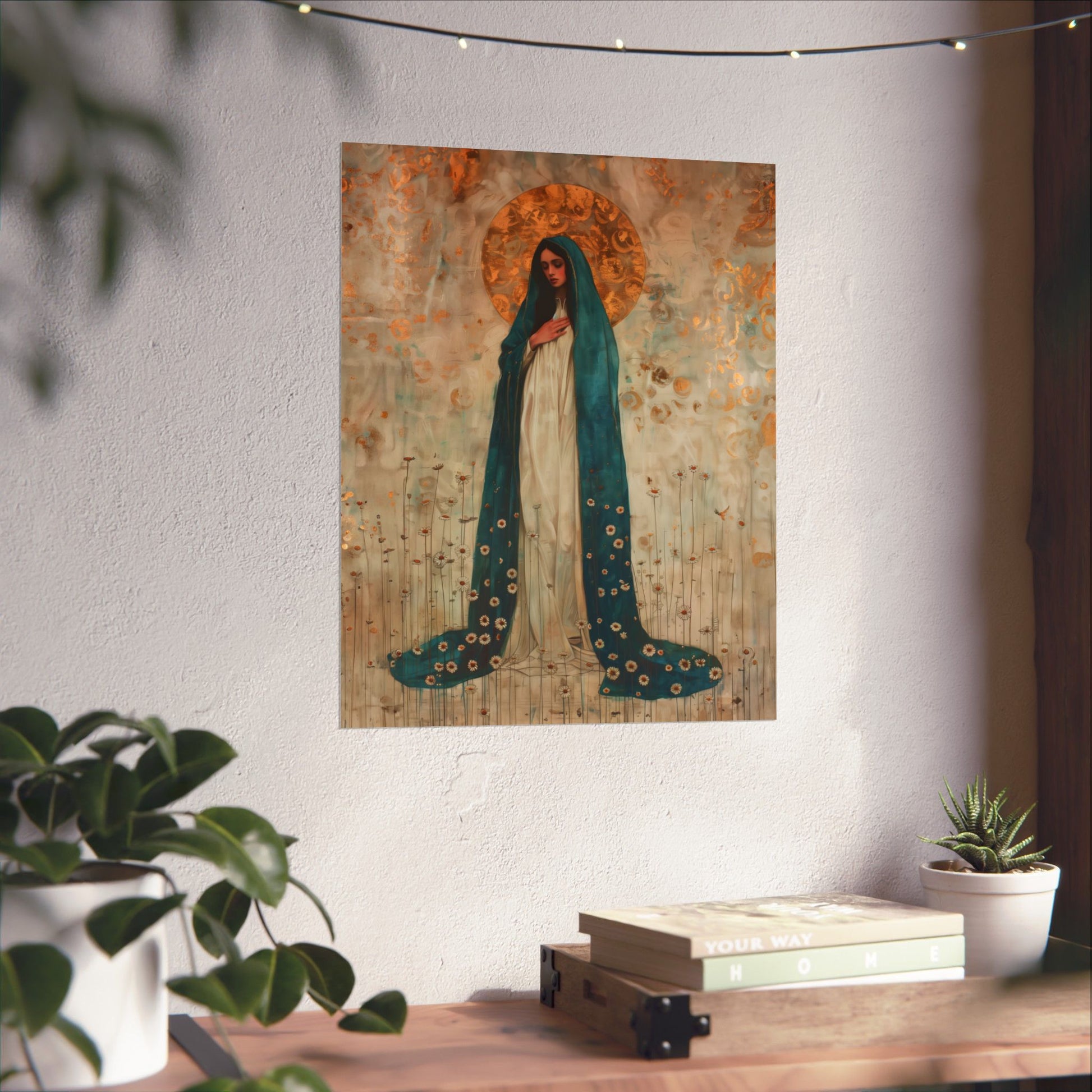 Serene Devotion - Mary's Compassionate Heart Poster Print - Sanctified Souls Print - Multiple Sizes - Premium Posters - Catholic Art