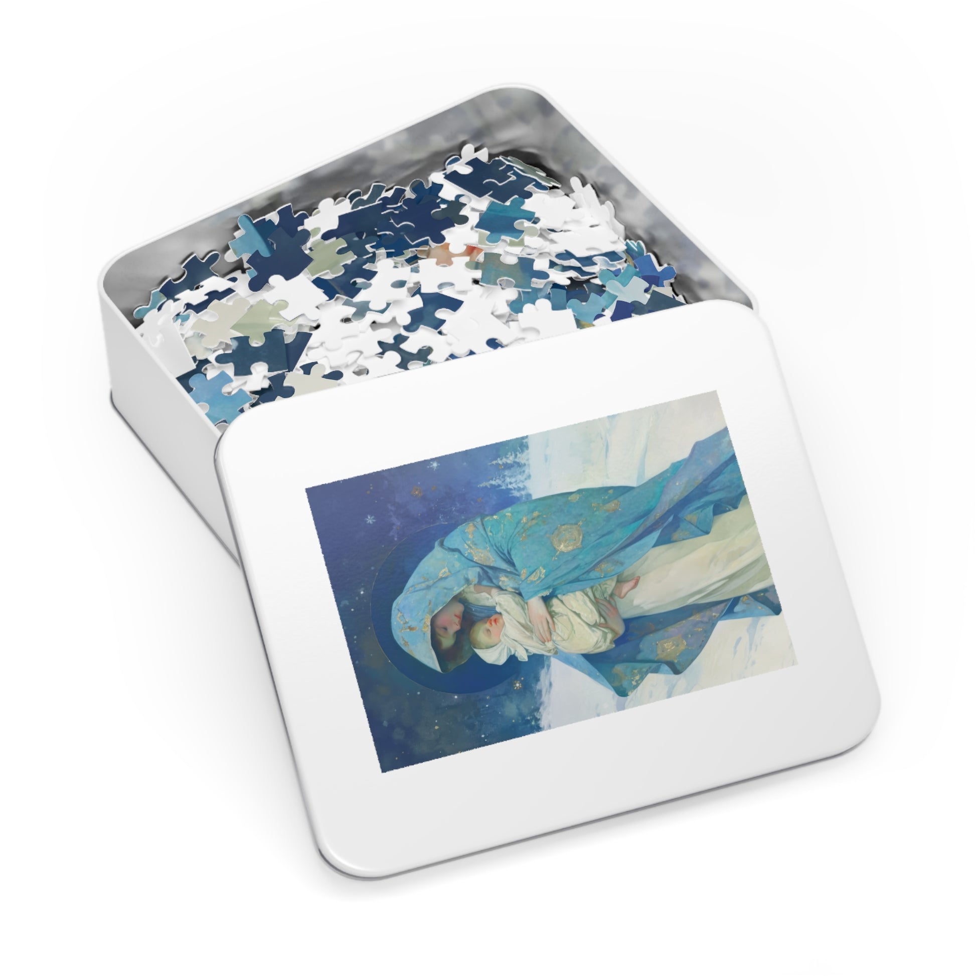 Snowfall of Grace: Our Lady's Blessing - Puzzle and Keepsake Tin - Religious (30, 110, 252, 500,1000) - Gifts for Catholic