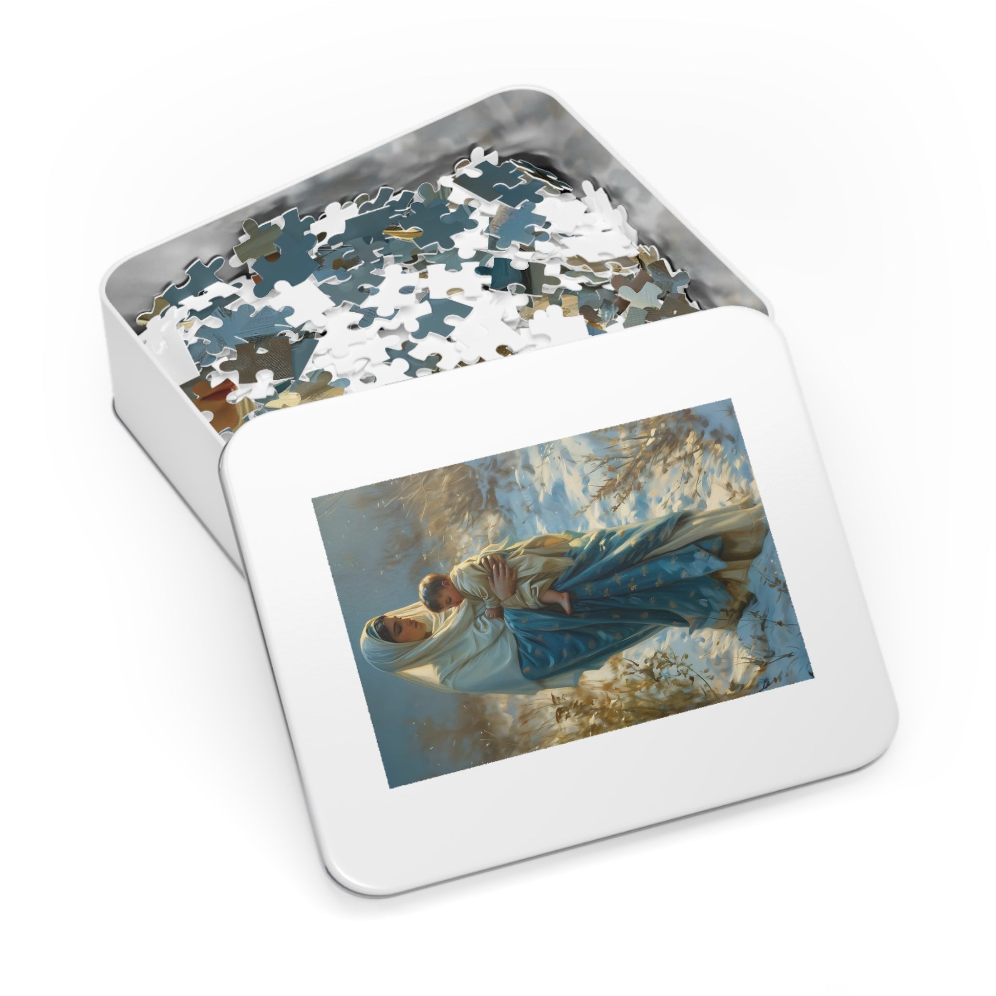 Snowfall of Grace - Our Lady's Winter Radiance - Puzzle & Keepsake Tin - Religious Puzzle (30, 110, 252, 500,1000-Piece) - Mary Art Puzzle