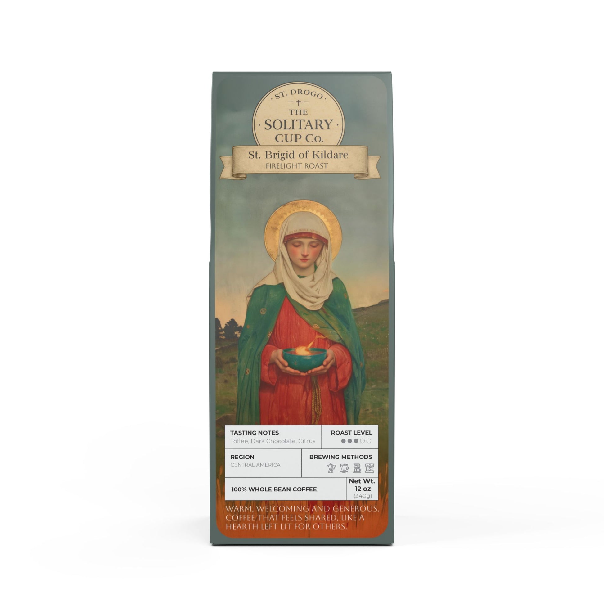 St. Brigid of Kildare - Firelight Roast (Medium Roast) - St. Drogo - The Solitary Cup Co. - Artisan Catholic Saint Inspired Coffee - 12 oz.