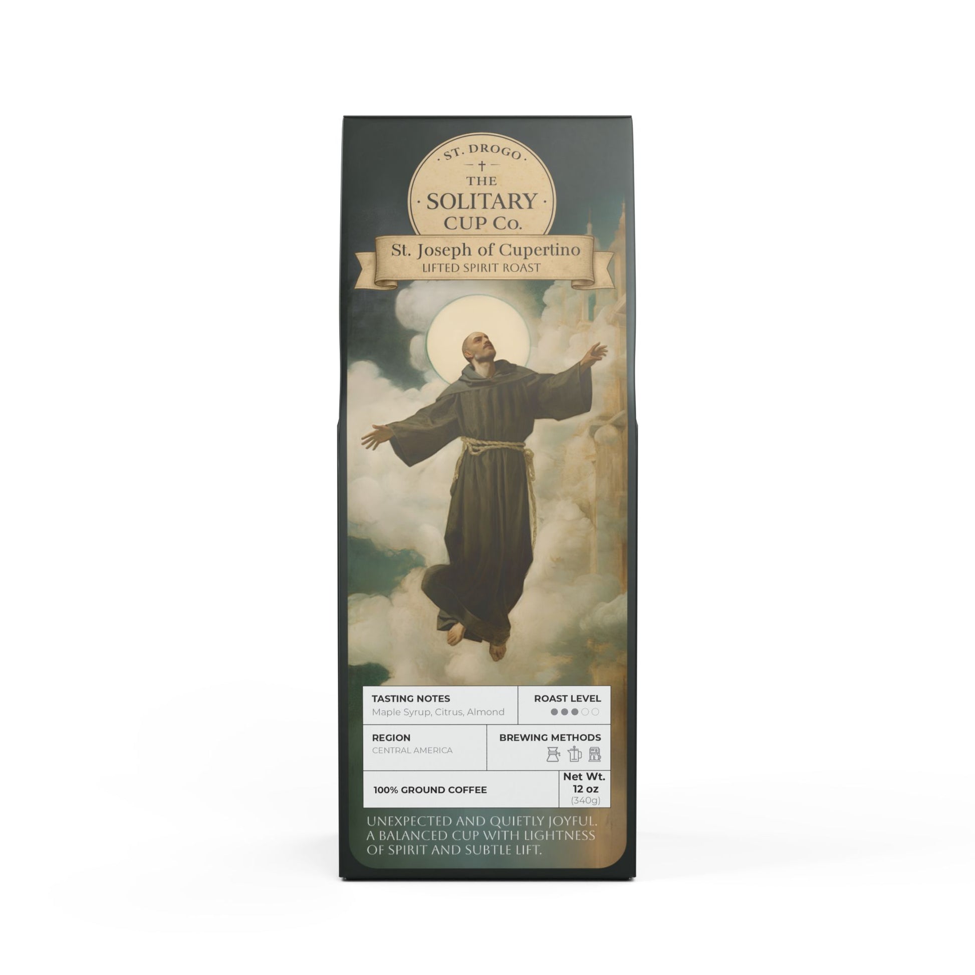 St. Joseph of Cupertino - Lifted Spirit Roast (Medium Roast) - St. Drogo - The Solitary Cup Co. - Artisan Catholic Saint Inspired Coffee - 12 oz.