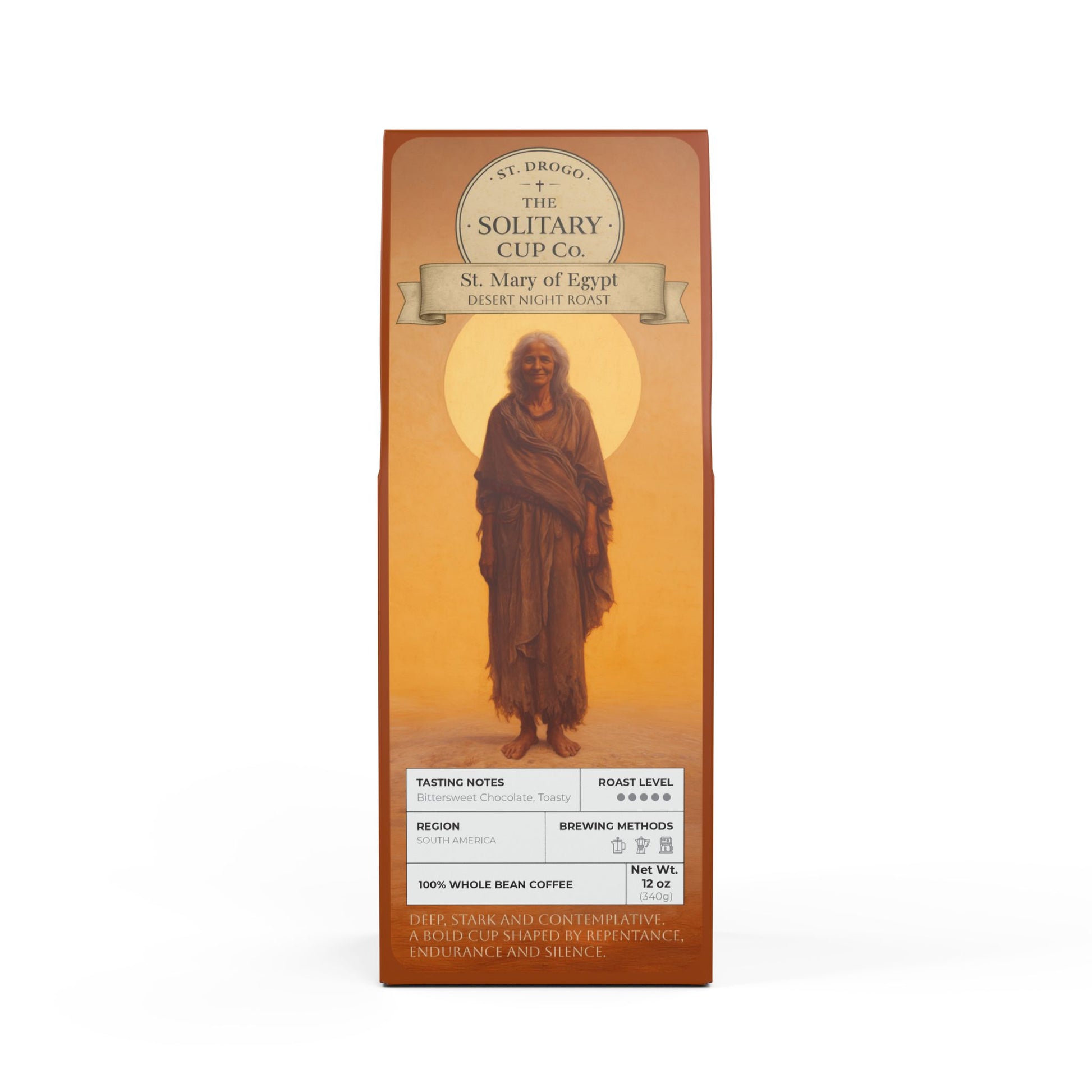 St. Mary of Egypt - Desert Night Roast (Dark French Roast) - St. Drogo - The Solitary Cup Co. - Artisan Catholic Saint Inspired Coffee - 12 oz.