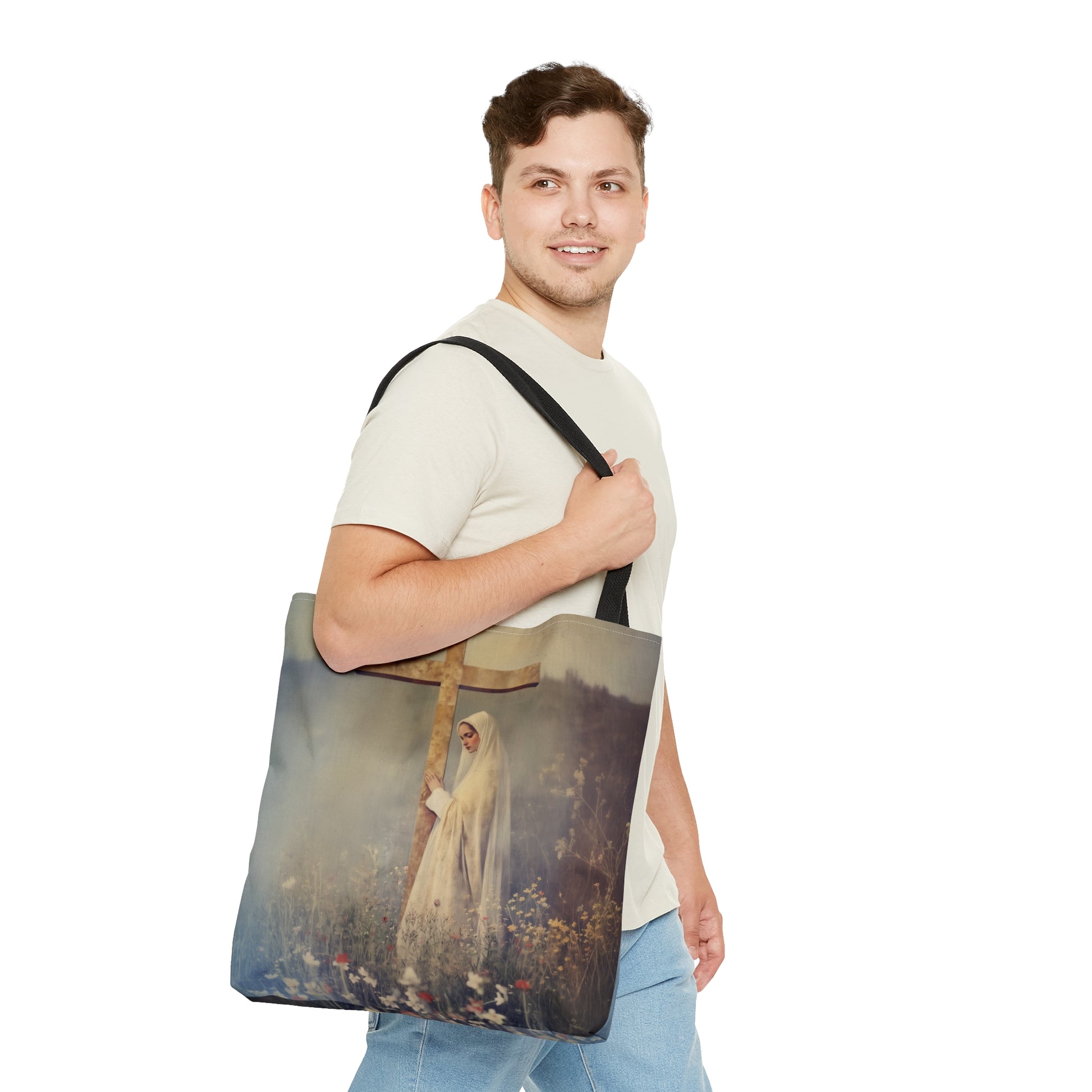 Welcome to Sanctified Souls Shop, where faith and art come together to create inspiring tote bags. Embrace the transformative presence of our extraordinary tote bag inspired by a Saint or Divine Figure. This bag is double sided All-Over-Print and features the same illustration on both sides. This practical, high-quality Tote Bag is available in three sizes.