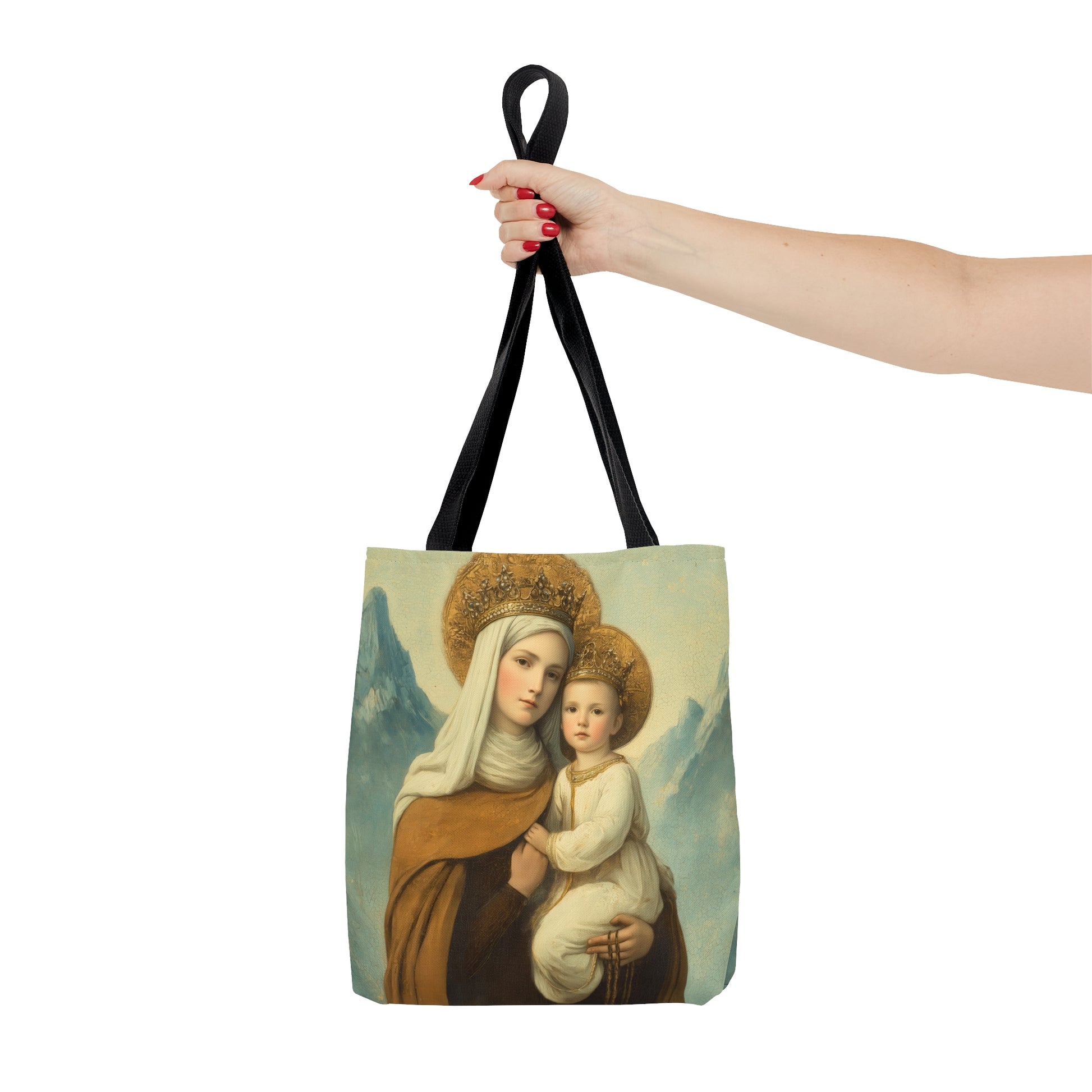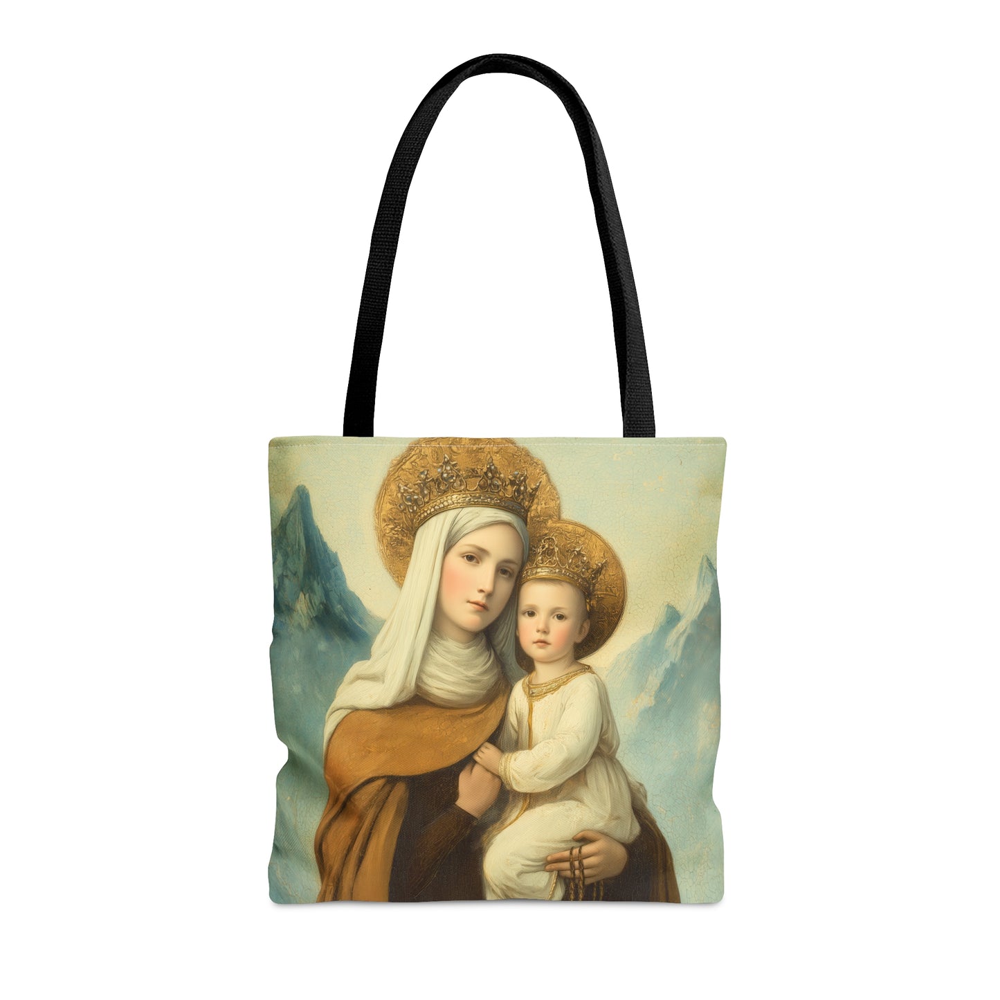 The Gift of the Scapular - Our Lady of Mount Carmel Tote Bag - Large Medium Small Faith Art Bag - Catholic Faith Purse - Double Sided